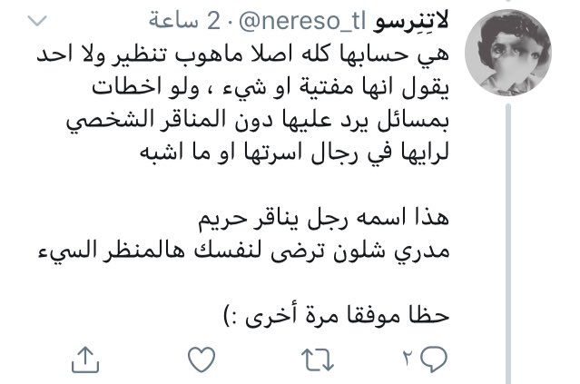 ورغم تحريض #النسوية_الاسلامية على شروط الزواج لصالح جنسها بالتعميم والعلانية، إلا أنها عند الحديث عن حقوقك تنتفض وتحارب الترويج لها، ففي موضوع لإحداهن عن (التعدد) والتشجيع على الزواج من المعدد انتفضت النسوية أنه لا يستعمل في تويتر فيه كل من هب ودب!