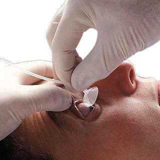 يسمى morgan lens device - يوفر لنا غسيل او تنظيف مستمر للقرنية - conjunctiva ( continuous eye irrigation )للإسعاف الطارىء للحروق الكيميائية او الحرارة وايضًا ل إزالة المواد الغريبة في العين