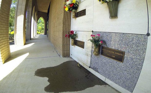 ٤/ في الڤيديو أحد زوار مقبرة في لاس فيغاس مصدوم من تسرب سوائل من أحد القبور. في هذه الحالة يتواصلون مع أهل الميت لنقله لتابوت جديد وتنظيف جسده مرة أخرى