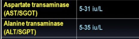 - AST (Aspartate aminotransferase) or GOT (Gglutamate Oxaloacetate Transaminase)