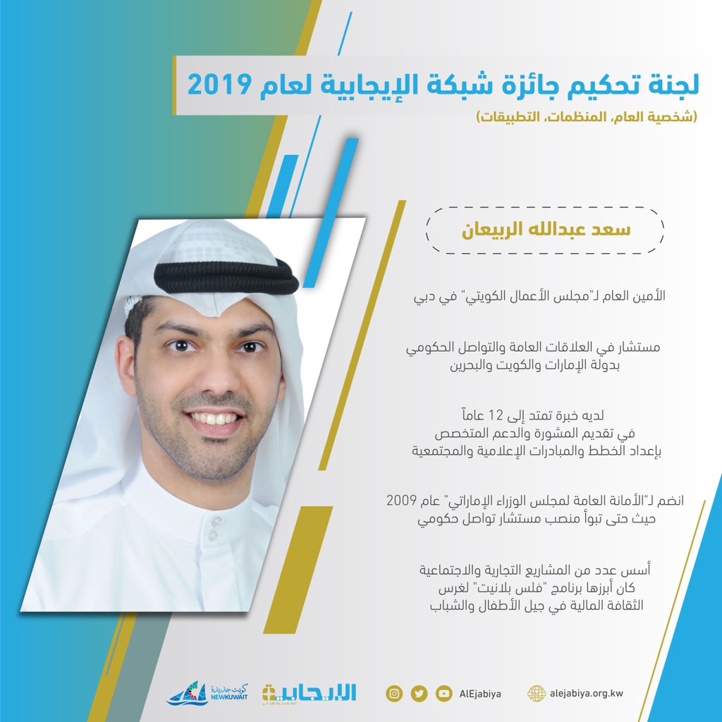 @AlEjabiya 6/ في عام 2015 أطلقنا #جائزة_شبكة_الإيجابية، بالتزامن مع الذكرى الـ 10 لتأسيس الشبكة والتي بدأناها بشخصية العام، ثم تطورت لتشمل ثلاث فئات هي: الشخصيات، والمنظمات الغير هادفة للربح، والتطبيقات الذكية التي تثري ثقافة المجتمع في مختلف المجالات.