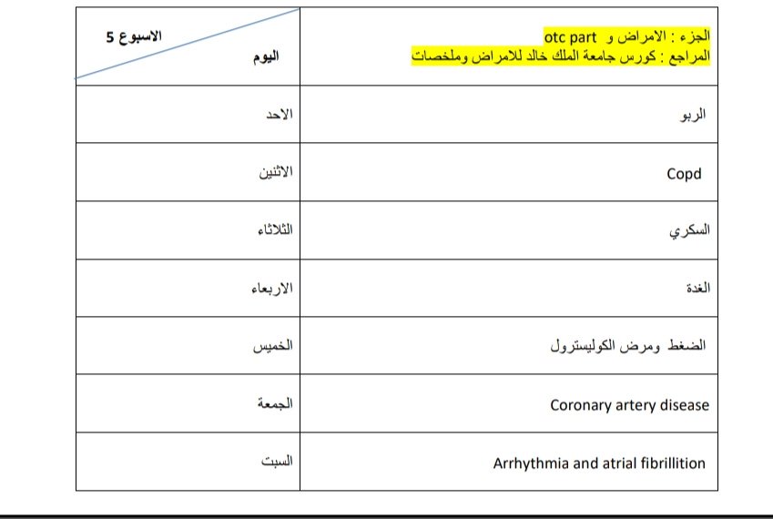 رابط الجداول مكون من ٥ صفحات كل أسبوع مفصّل فيه الجزء اللي راح تدرسونه فيه وكمان راح أحط لكم مصدر كل موضوع :