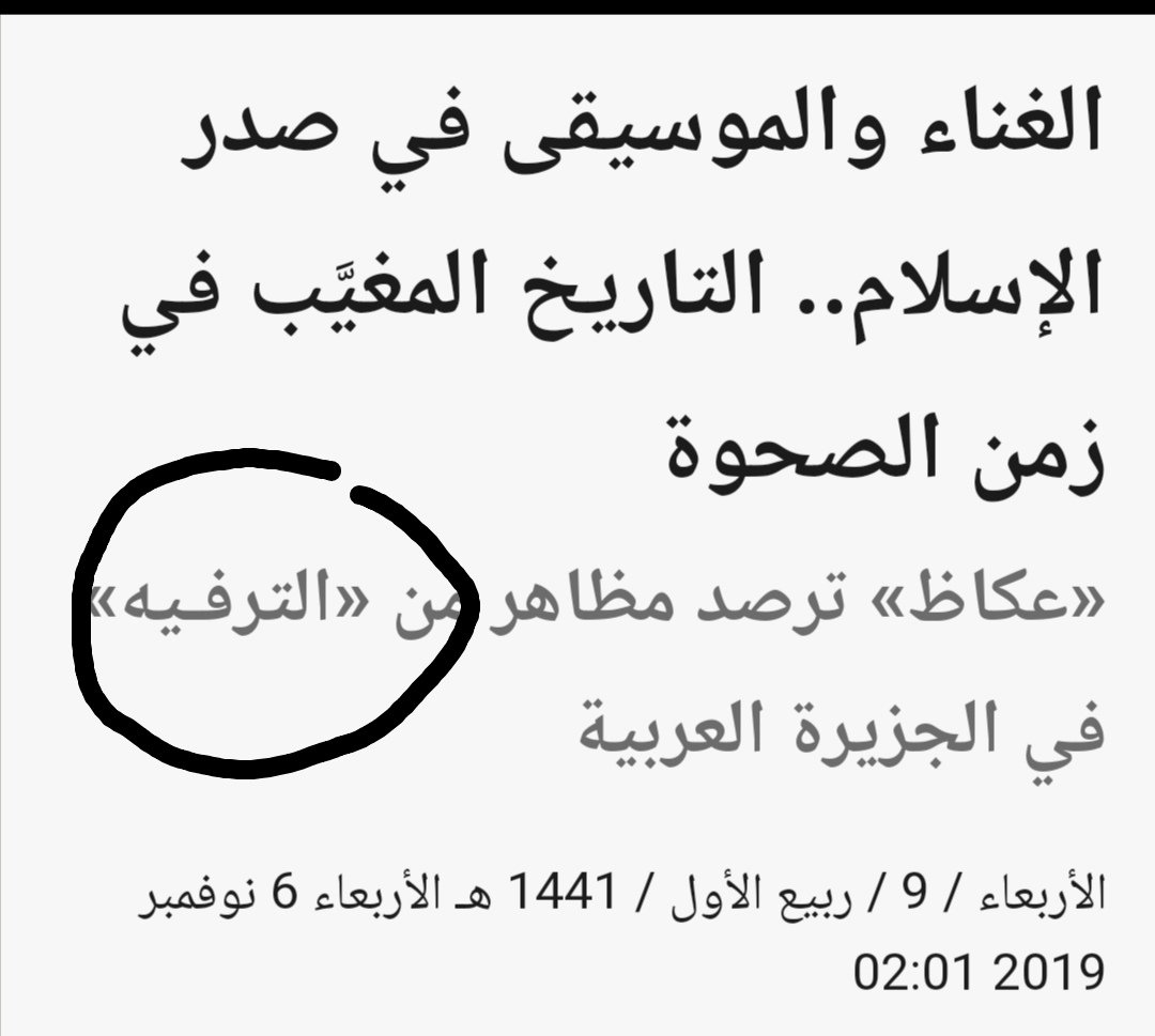 ظل طوال المقال يحاول جاهدا إقناع القارئ بوجود مغنين في الدولة الإسلامية ، وتصوير هذه المقدمة أن نتيجتها الحتمية = الغناء من ((الترفيه)) المباح