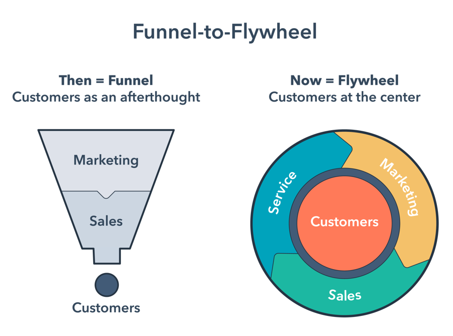 المشكلة ان الكثير من الشركات تستشير شركات التسويق والتي من مصلحتها القيام بالمزيد من الحملات الاعلانية وولكن نظرية Flywheel او عجلة التوازن ان صحت الترجمة تقول غير ذلك