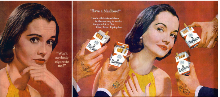 وجدت مارلبورو في هذا الحدث فرصة لتضع اسمها على الخارطة، فقامت بالتعاقد مع شركة إعلانات وأرادت أن تغير رسالتها وأن تنتقل من استهداف فئة النساء إلى الرجال.