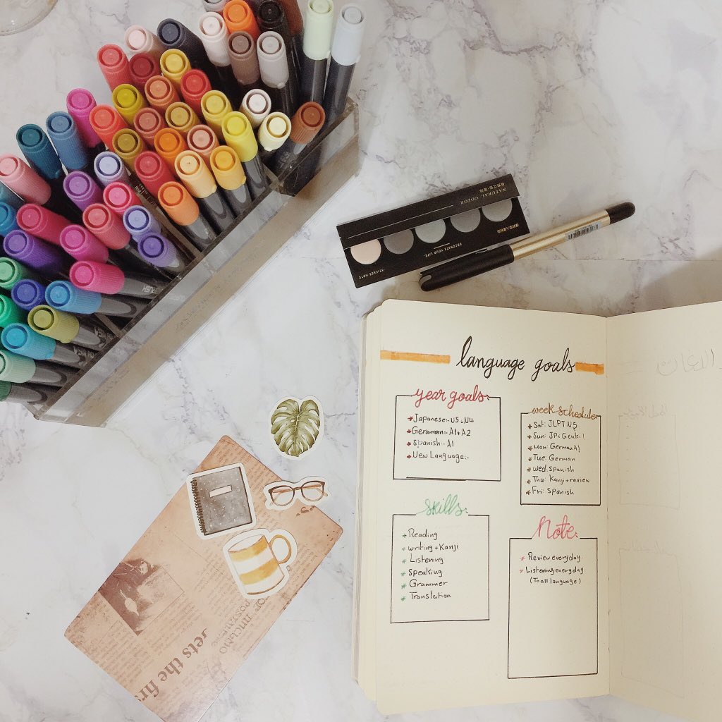 في بداية تعلمي للغات، كنت أدون لكنني لا أنتظم و في الحقيقة لم أكن من الذين قد يضعون خططًا يومية أو ما شابه فيذهب تعلمي هباءً! لكن بفضل الله ثم المنظمات استفدت الكثير"منها بداية محاولاتي لتقليد الرسم👩🏻🎨"