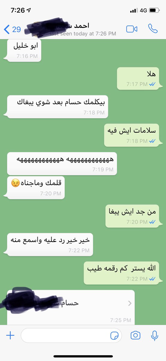 أحاول الرد، يكمل: ما عليك ابو هادي استمر موعدنا السبت ومعاي اخوي حسام وسلم لي على قرابع