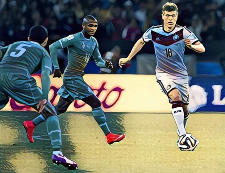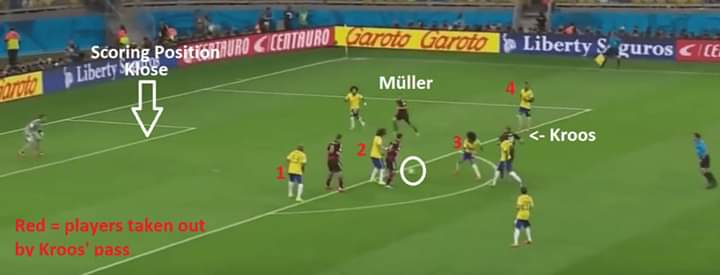 يحصل كروس على اربع نقاط لتمريره الكرة الى مولر ،واستطاع كروس بهذه اللقطة تحييد اربع مدافعين بتمريرة واحدة