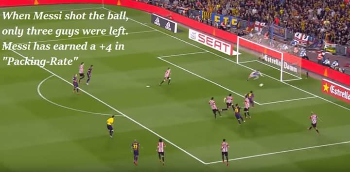 عند لحظة التسجيل استطاع تحييد ثلاثة من مدافعي الخصم، من الصعب أن تكسب اربع نقاط في التعبئة بتمريرة ،لكن ميسي يستطيع أن يفعل