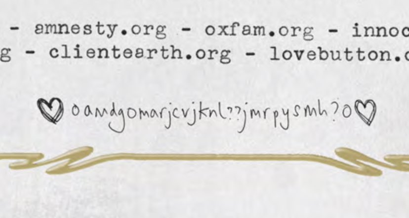 في نهاية كتيّب الألبوم ستجدون مجموعة أحرف غريبة..ليست شفرة، أعضاء فرقة كولدبلاي يقومون بوضع الأحرف الأولى من أسماء أفراد عائلاتهم نهاية كل ألبوم