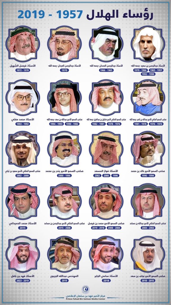 #الهلال أسّسه "عبدالرحمن بن سعيد" -رحمه الله- ليكون بطلًا.. وتناوب على رئاسته 19 رئيسًا ساهموا بفضل من الله أن يستمر #الهلال_كبير_آسيا.. فالشكر والفضل لهم على ما قدموا ليكون الهلال هو الزعيم في الأنشطة كافة