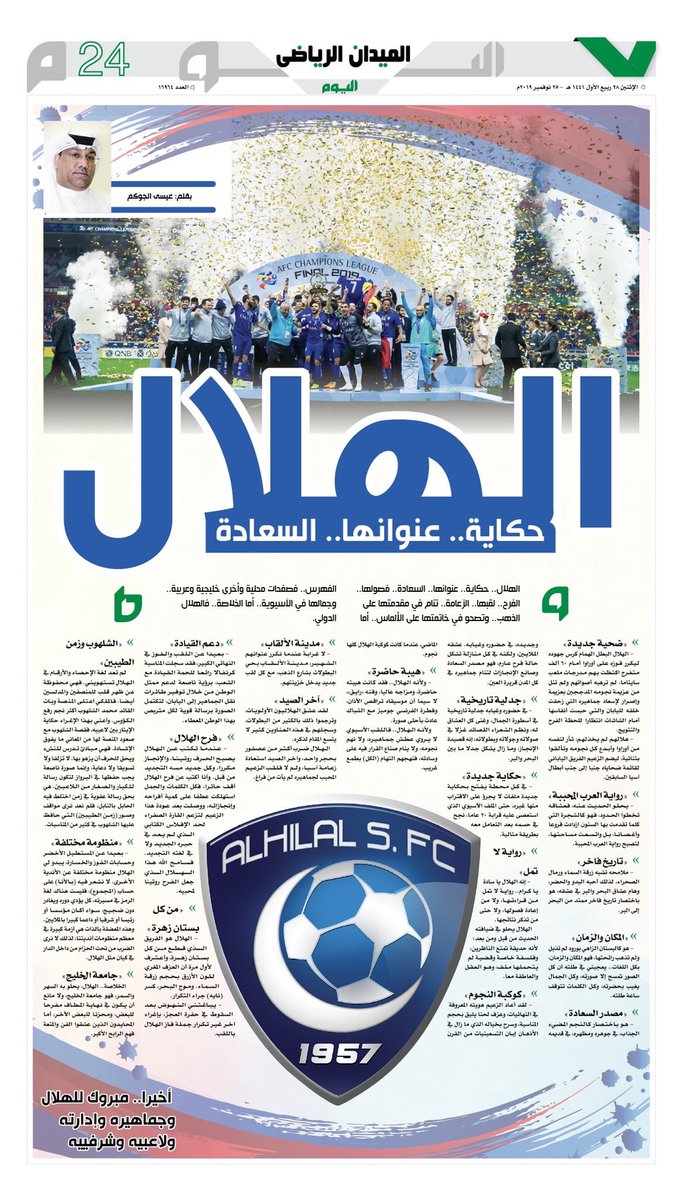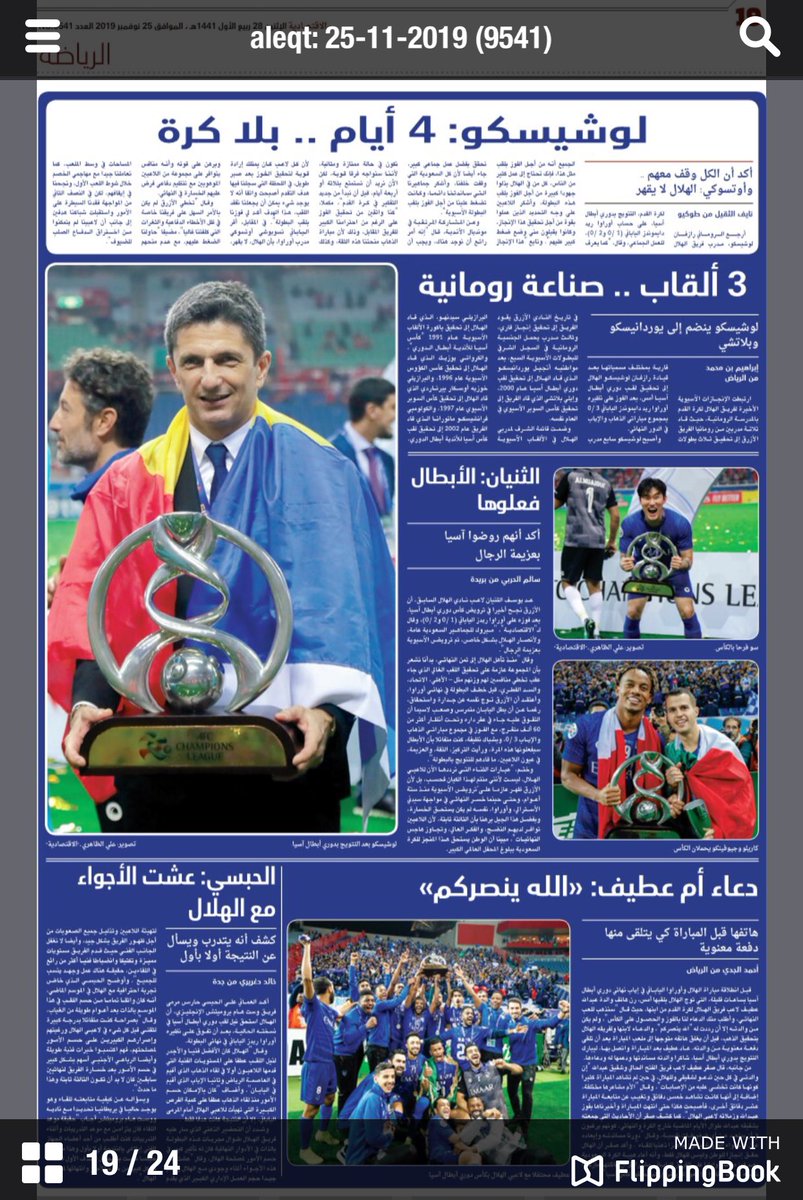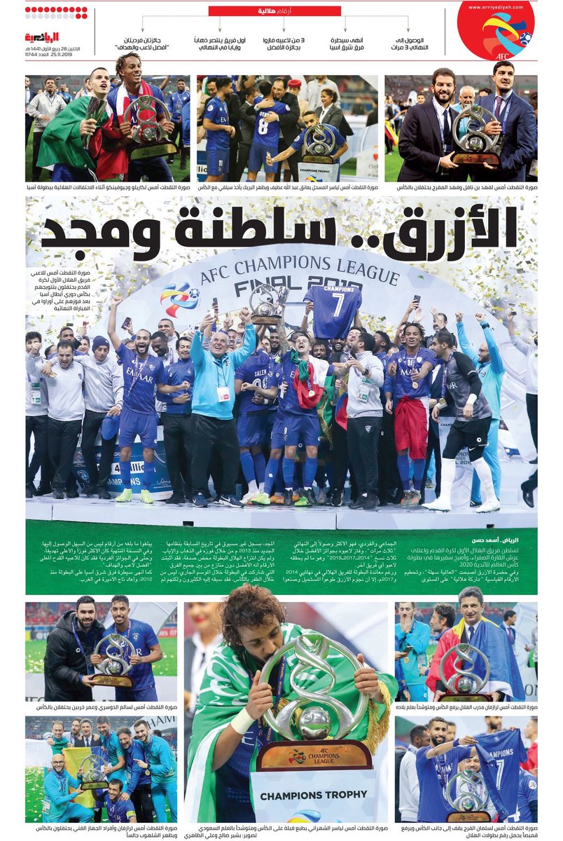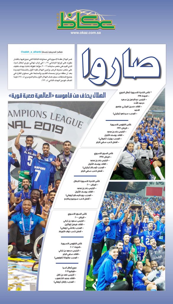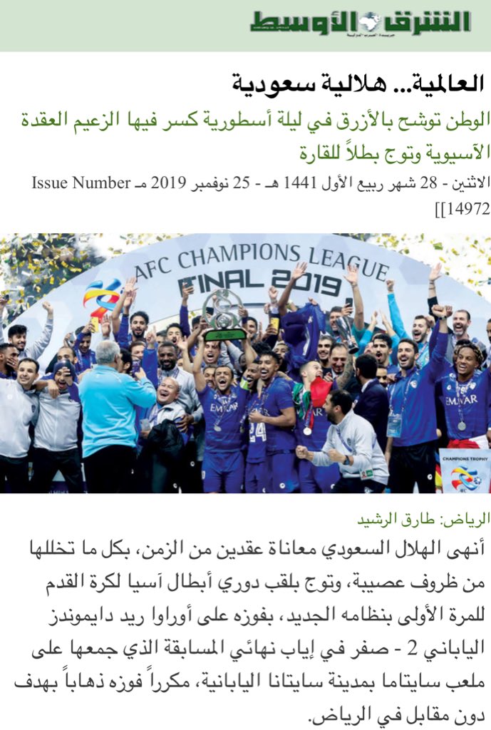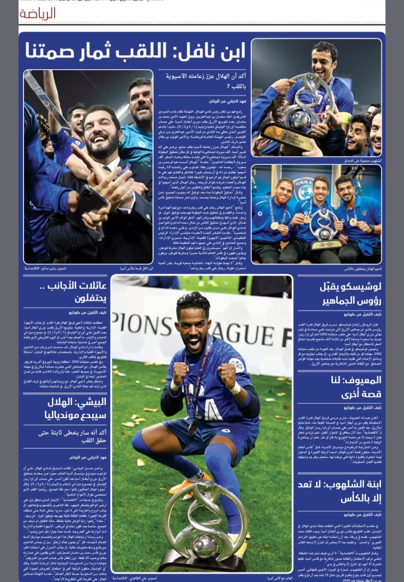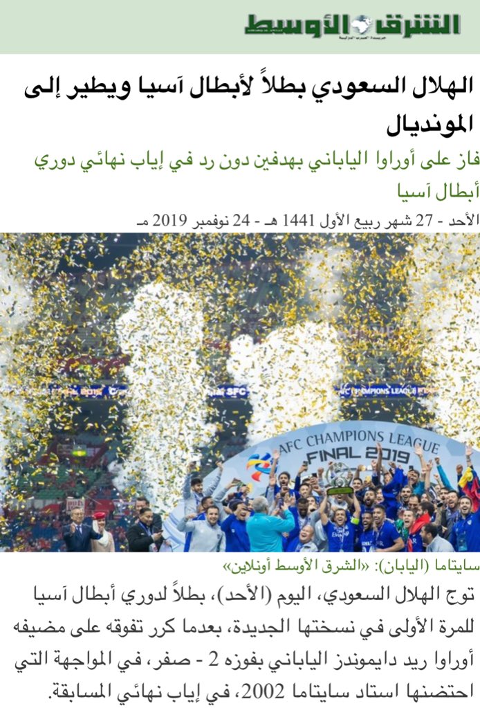 تحت هذه التغريدة أضع بين يديكم أغلفة الصحف و الملاحق الرياضية و الوكالات بعد الفوز التاريخي للهلال بدوري ابطال اسيا 2019