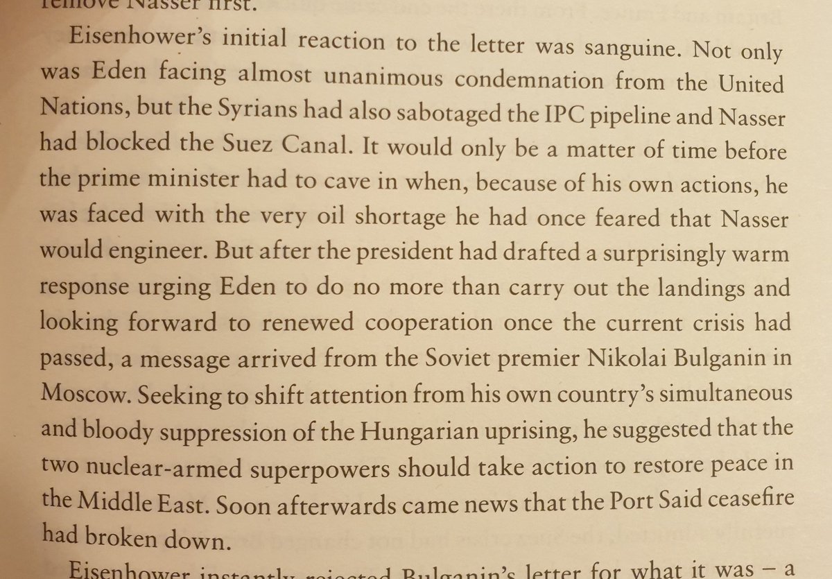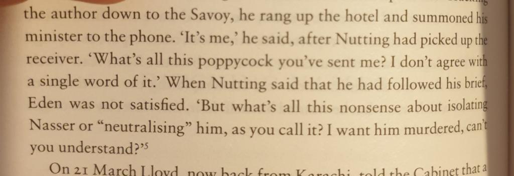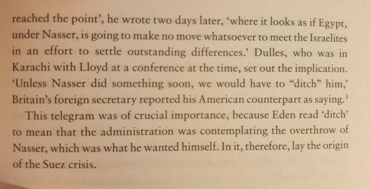بريطانيا كانت تنظر لجمال عبدالناصر ان هتلر اخر و فعلا يهدد مصالحها و ان الامريكان سذج بمحاولاتهم ارضاء عبدالناصر.