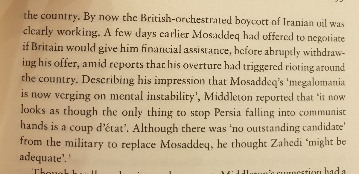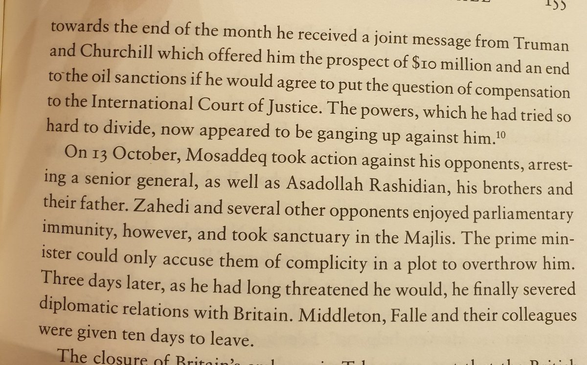 عميل الاستخبارات الامريكي المعروف كيم روزافلت يؤكد ان خلال عملة في القاهرة خلال الحرب العالمية الثانية، كان البريطانيين لا يتعاونون معه مع انهم حلفاء في الحرب ضد المحور.