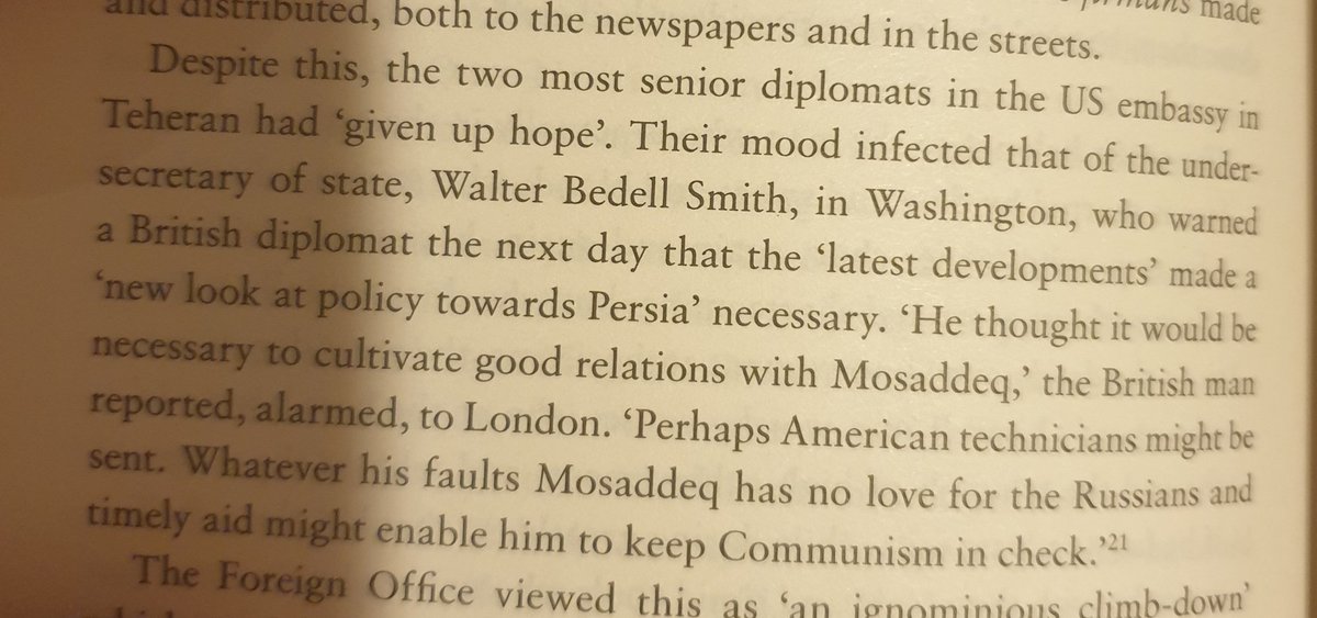 في الاربعينات كبار الساسة البريطانيين على راسهم وزير الخارجية أيدن لديهم اعتقاد ان اكبر خطر على مصالح بلادهم في الشرق الاوسط هم الامريكان.