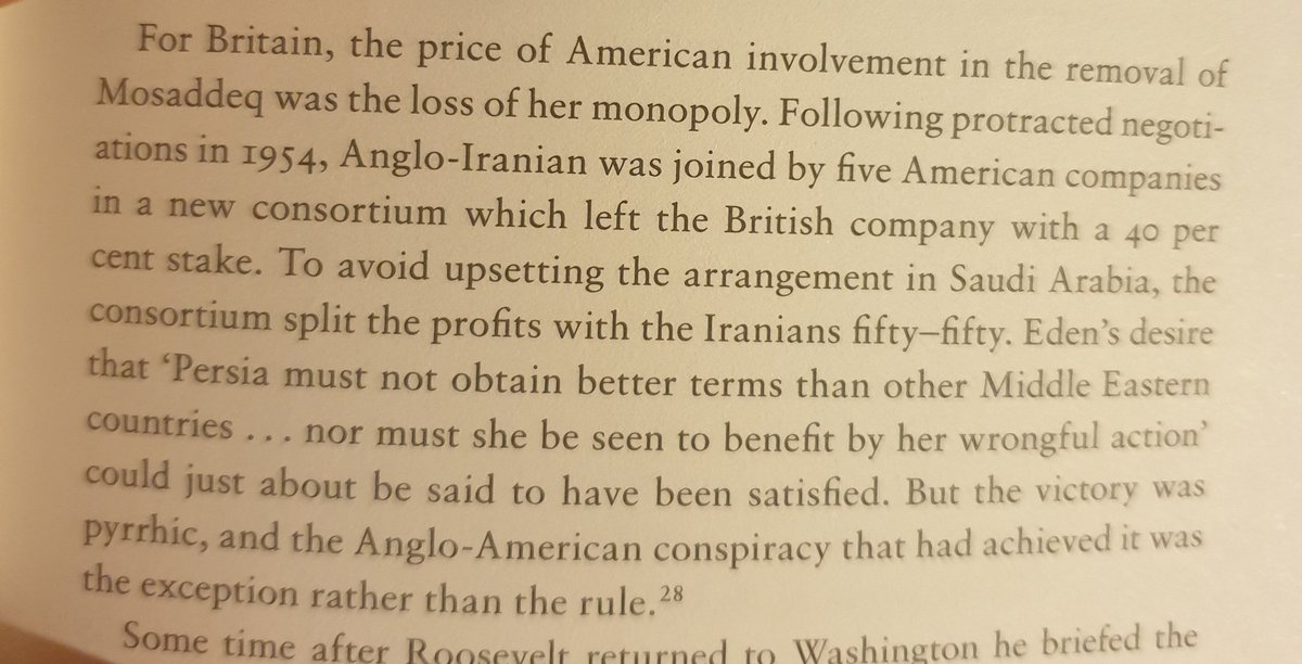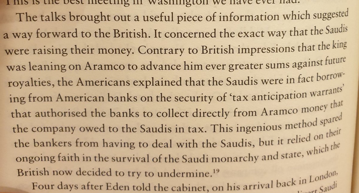 البريطانيين كانو عازمين على اعطاء الملك عبدالعزيز عرض افضل من الامريكان و احتكار كل نفط الشرق الاوسط.