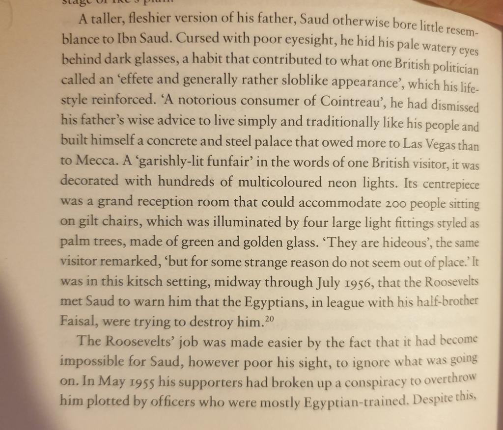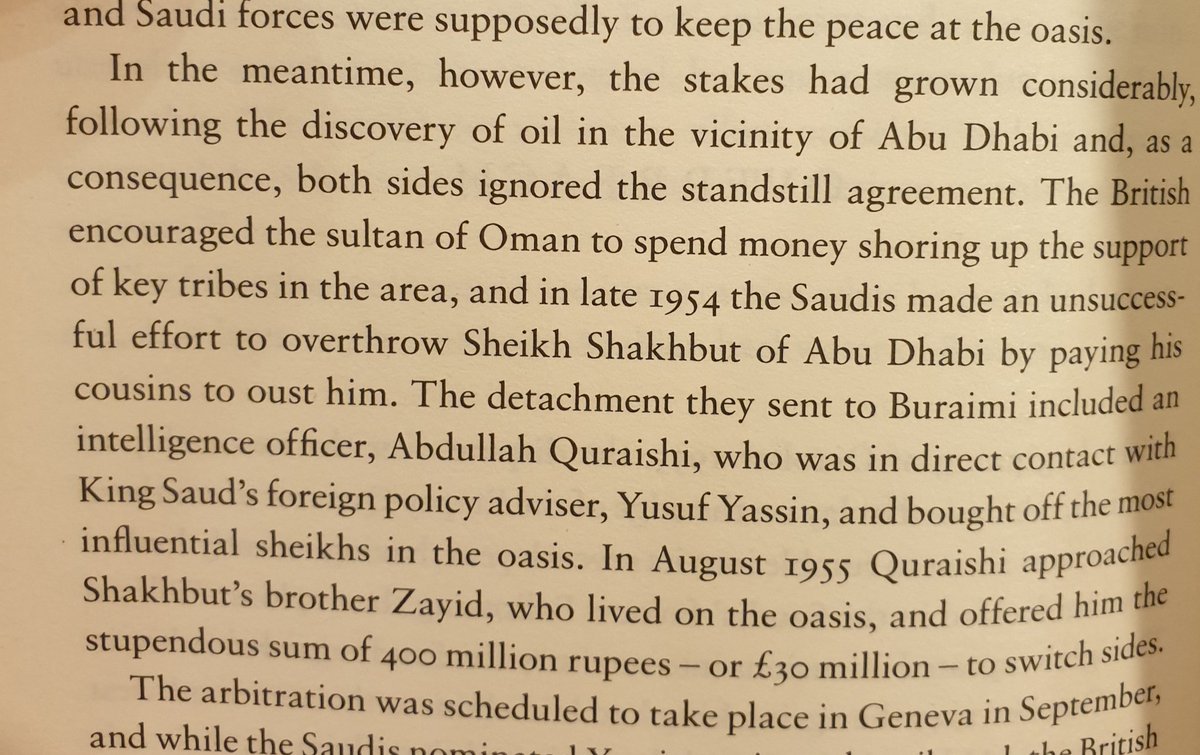 الملك اشتكى للامريكان ان البريطانيين يستثمرون اموالهم في نفط ايران و العراق و مهملين سواحل الخليج الفقيرة.
