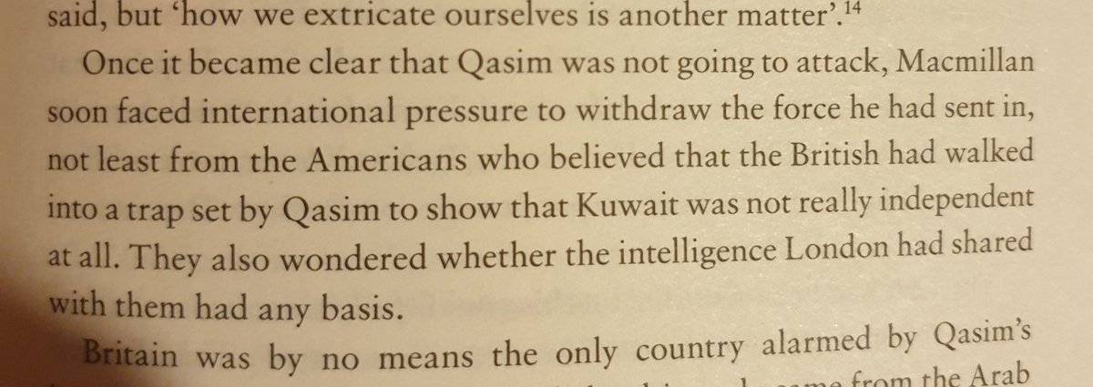 في لندن يقول رئيس الوزراء ماكميلين ان قاسم خدعنا حيث بين للعالم ان الكويت ليست جاهزة للاستقلال و تحتاج الى حماية خارجية.