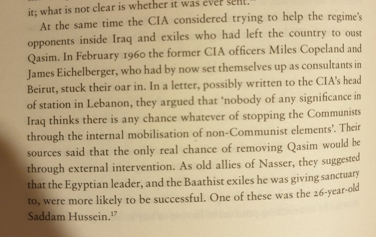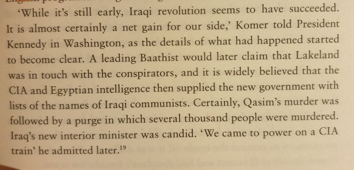 "لا توجد قوى داخلية بأستطاعتها الانقلاب على قاسم و الشيوعيين يكتسحون الدولة، فقط غزو خارجي ممكن قلب الحكم"