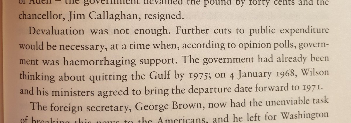 البريطانيين ١٩٦٥ كانوا جادين بالانسحاب من عدم لاسباب اقتصادية و ليسوا مهتمين بمناشدات امريكا في البقاء.
