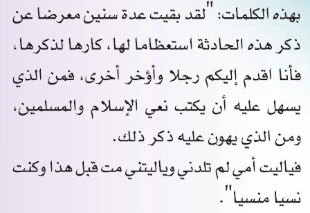 “لقد بقيت عدة سنين مُعرضًا عن ذكر هذه الحادثة استعظامًا لها ، كارهًا لذكرها ، فأنا أقدم إليكم رِجلًا وأُؤخر أخرى ، فمن الذي يسهل عليه أن يكتب نعي الإسلام والمسلمين ، ومن الذي يهون عليه ذكر ذلك …