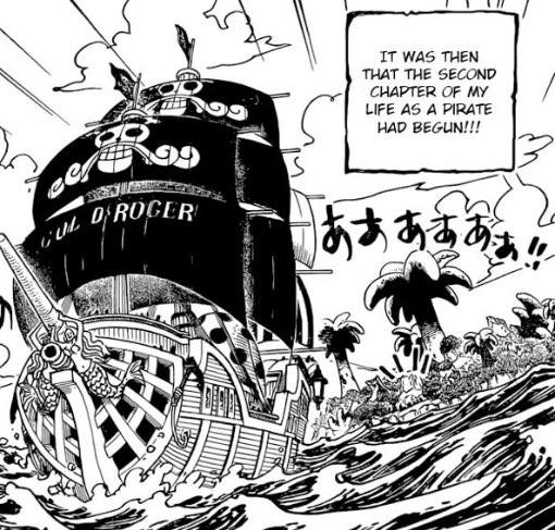 "عندها بدأ الفصل الثاني من حياتي كقرصان. بداية مغامرة جديدة! إن وايتي-تشان رجل عظيم ولكن روجر لا يقارن به حتى! كم أنا محظوظ!!" مدونة كوزوكي اودن | فصل اكتشاف العالم ?