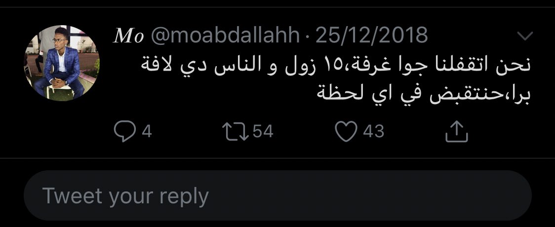 طلع واحد كشف المنطقة و طلعنا بحالة يرثى عليها حفاية بناطلينا مقطعة اي زول في الشارع بعاين لينا بي طرف عينو ديل متظاهرين شماسة ساي ، اتذكر اي صاحب دكان اقول ليهو اديني سفجنة يقول لي ما عندي و انا شايفها قدامي في الرف عرفت ليه البشير حكمنا ٣٠ سنة