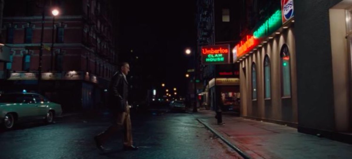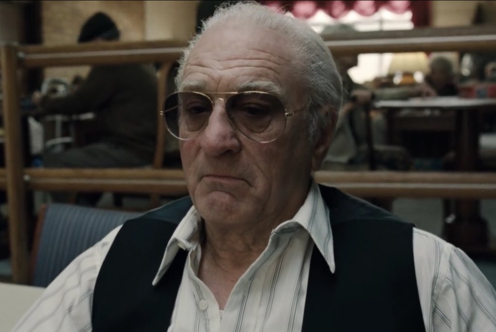 طبعا بعدها أتى لنا مشهد لروبرت دينيرو وكأنه بشبابه بهذا المشهد سكورسيزي أستعمل تقنية واللي تعتبر للمرة الأولى في السينما، تظهر الممثلين أصغر بسنوات دون الحاجة إلى استخدام مكياج معين، وللأمانة جدا أبدع واظهر لنا بشكل مذهل للغاية.