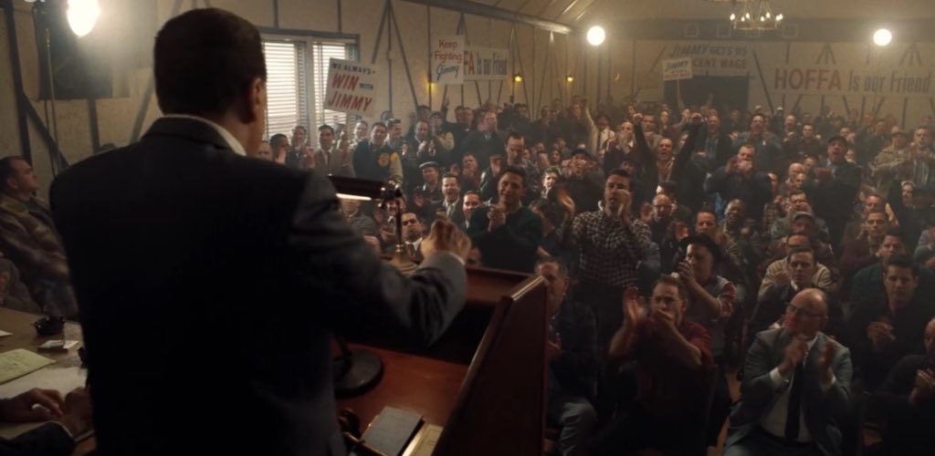 نوصل لأهم حدث بالفيلم الظهور الرائع والاجمل للأسطورة ال باتشينو اتكلم عن الكاريزما اللي يملكها ولا الاداء اللي قدمه وهو بالعمر ال٧٠، صعب جدا انصفه او اتكلم عنه زيادة، الدور اللي قدمه لشخصية "جيمي هوفا" يستاهل يكون وحدة من أجمل الادوار اللي قدمها بحياته.