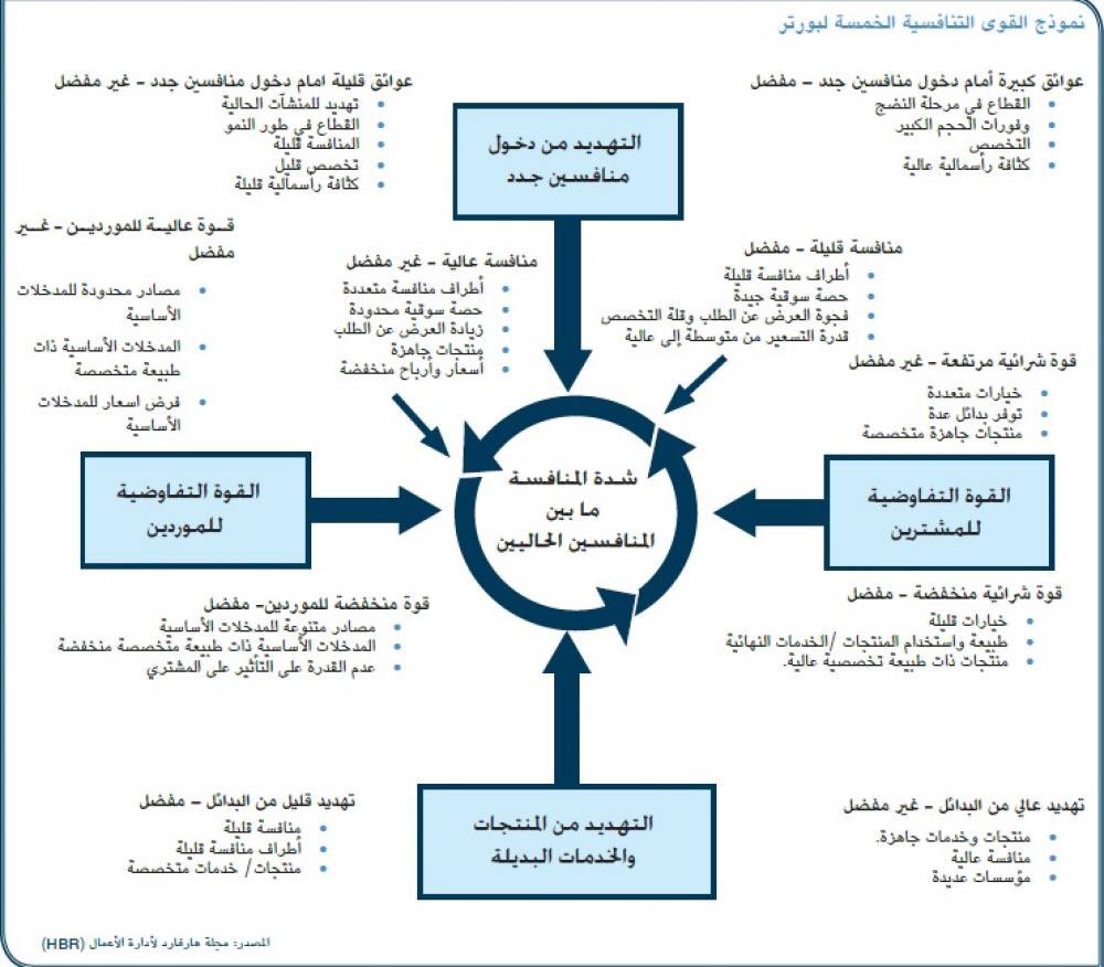 وفي الصورة نموذج القوى التنافسية الخمس كما وضعه مايكل بورتر.