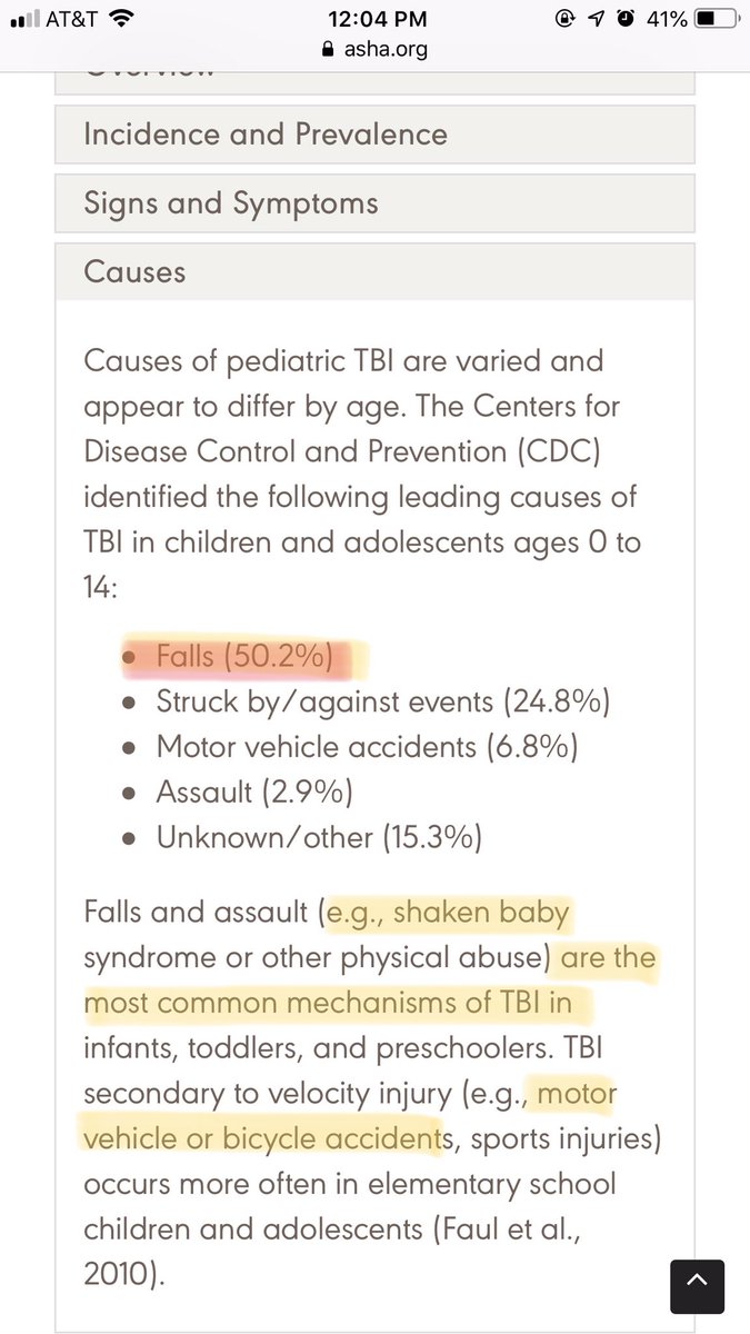 هذه صورة من مقال توضح نسبة اصابات الدماغ عند الأطفال (٥٠٪ سببها السقوط)