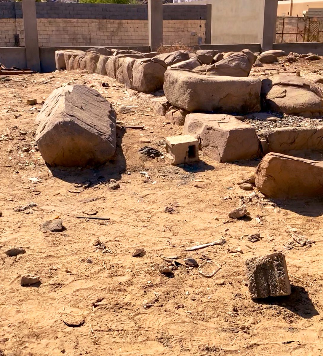 الموقع الأثري في مزرعة أتحفظ على ذكر موقعها لذات السبب أعلاه.وهذا الجبل(الحِرْشَه)مكون من صخور غرابيب سود لامعة لا تشبه صخور الجبال المحيطة. وللأسف بأنه تعرض للردم والبناء على أجزاء منه، وبعض هذه الصخور الغريبة متناثر في عدد من المزارع وتم استخدام بعضها في عمل الأحواض المائية.