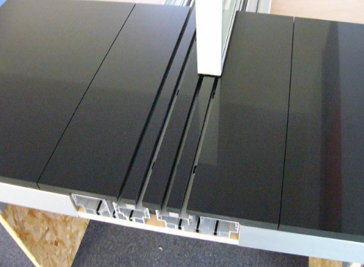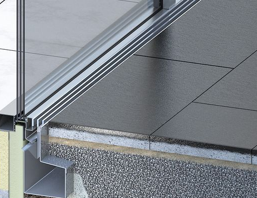 هذه أمثلة لقطاعات ألمونيوم، يكون تركيب القطاع فيها أسفل مستوى تشطيب الأرضيات، لضمان انسيابة الحركة ما بين الداخل والخارج.