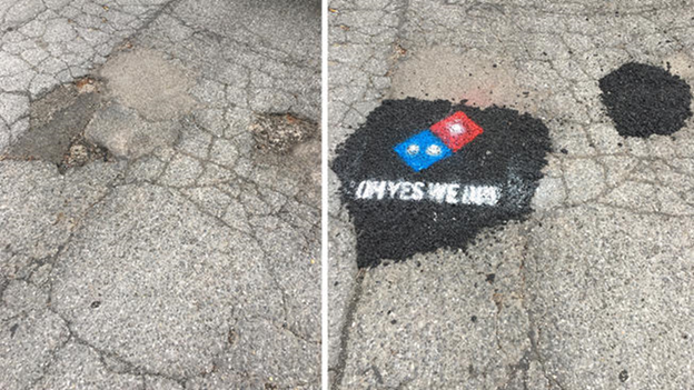 3- وما اكتفت بكذا .. كمان صرحت الشركة بأنها حتقدم منح بقيمة 5000 دولار إلى 20 موقعًا عبر الولايات المتحدة للمساعدة في ملء الحفر وإصلاح الطرق المتشققة في مدن وولايات أخرى داعية بأن البيتزا حتوصل اسرع وبصورة سليمة وماحتتلف اثناء نقلها للعملاء.