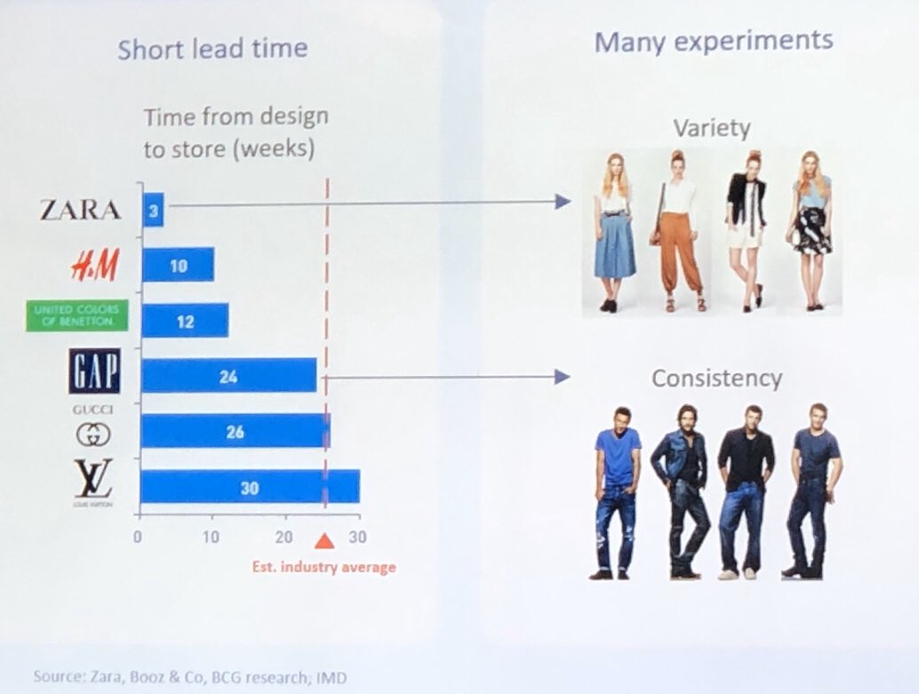 الميزة التنافسية التي حاول مؤسس زارا أن يحققها هي (السرعة في التصميم والتنفيذ بشكل بسيط) لكي تكون منتجاته وتصميماته في السوق بشكل سريع وتكون متغيّره