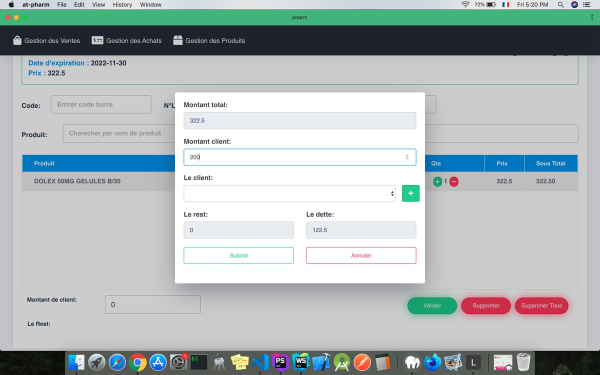 وهو بناءه على شكل SPA مع تقنية PWA حيث اعتمدت في backend على laravel لبناء web service وmysql لقاعدة البيانات وsocket لاشعارات المخزون عند انتهاء كمية او انتهاء صلاحية دواء..?