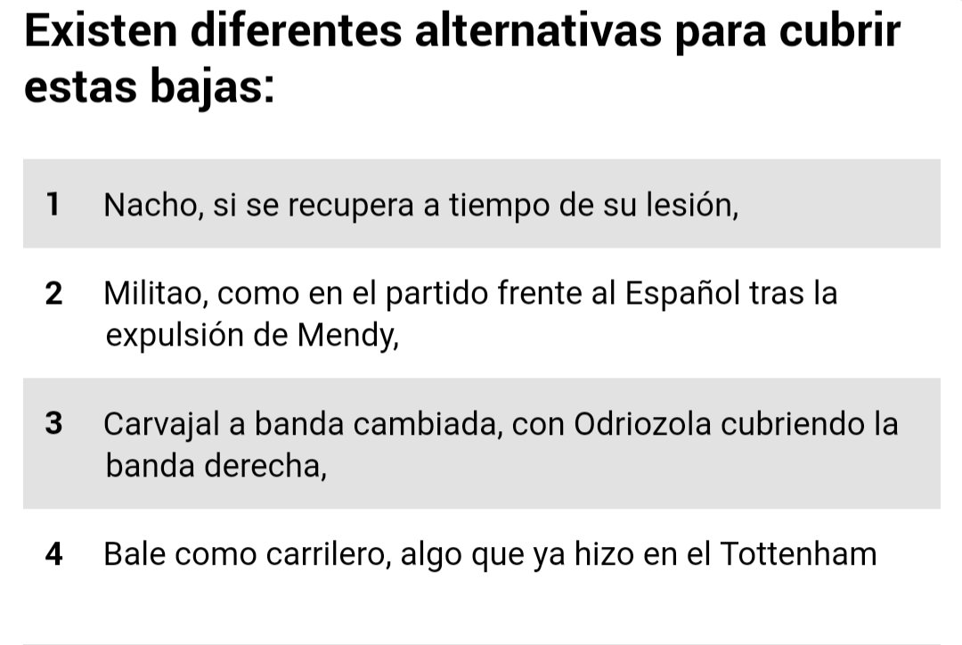 ماركا | ومع ذلك، فمن الواضح أن كلاً من مارسيلو وريغيلون لديهم مجال للتحسن. وفي الأخص في حالة 1 ضد 1. هناك مشكلة تتمثل في قلة عدد العقبات التي تحدث عند قطع تمريرة أو منع تسديدة الخصم. يمكن أن يكون سبباً لوضع دفاعي سيء أو تأخر في وضع الحصار على لاعب الخصم من قبل الفريق.