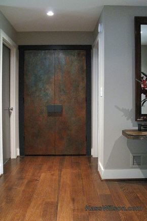 ممكن أن يتم دمج شرائِح من الخشب مع الباب الحديدي،