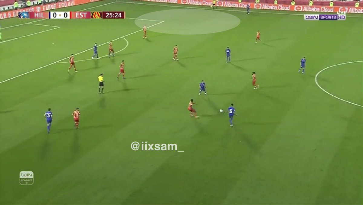 الترجي ما كان يضغط بشكل عالي وقوي على الهلال الا في حالات قليلة لأنه كان يعرف ان الهلال قادر على تجاوز ضغط وانه بيترك مساحات للهلال في الخلف لذلك كان يلعب بمناطق متوسط ويحاول يفتك الكرة بالوسط.
