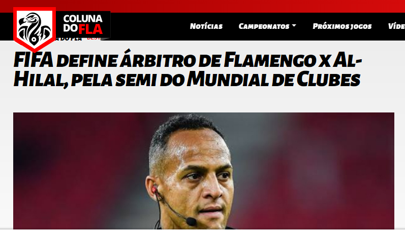 موقع "colunadofla": الحكم إسماعيل الفتح يُدير مواجهة #الهلال_فلامينغو في نصف نهائي #كأس_العالم_للأندية. إسماعيل الفتح أمريكي من أصل مغربي ويُدير المباريات في الدوري الأمريكي، كما عُين هذا الموسم لإدارة مباريات في بطولة الكونكاكاف وأدار اللقاء الودي بين البرازيل وكولومبيا