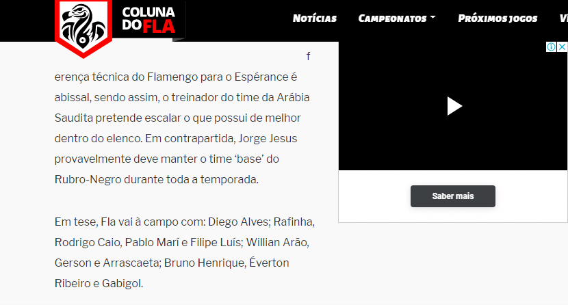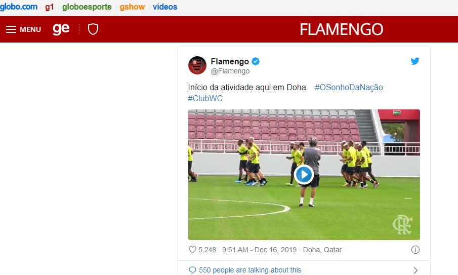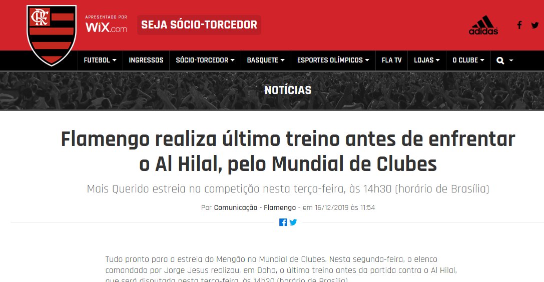 قبل قليل صحيفة "terra" البرازيلية تنشر تقريرا عن نادي #الهلال قالت فيه: سيكون خصم عنيد أمام فلامنجو في #كأس_العالم_للأندية. تولى تدريبه من قبل المدرب خورخي جيسوس. هو أول فريق السعودية يلعب في البطولة منذ عام 2005. مدربه هو الروماني لوشيسكو ولديه نجوم من العيار الثقيل في تشكيلته