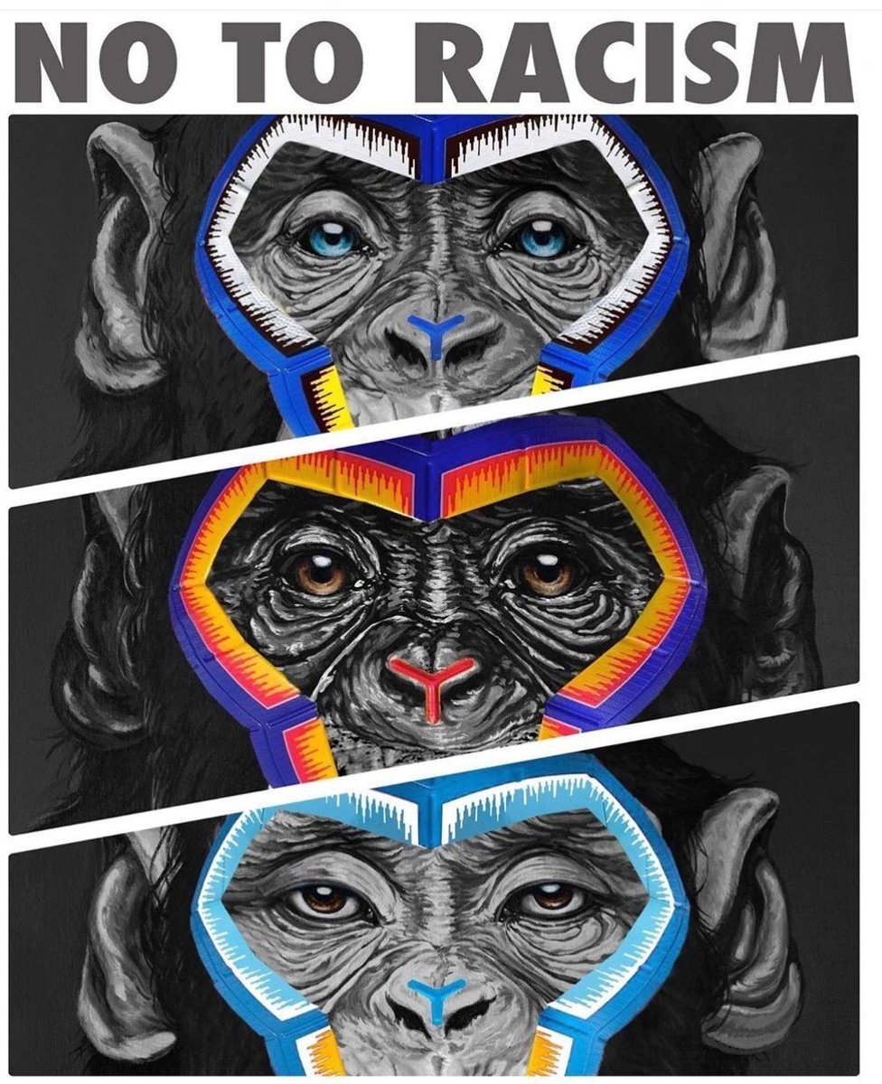 يكُمل الرسام اللي بيفضخ مرارتي [ آسف على عدم الاحترافية - ما اقدر ما اعبر ] : "انا ارسم القرود في رسومي كتعبير عن البشرية. انا اعيد الكرة مجددًا لمرمى العنصريين، لأننا جميعًا نعود بالأصل للقردة. رسمت قردًا غربيًا، وقردًا آسيويًا، وقردًا أسود." ?