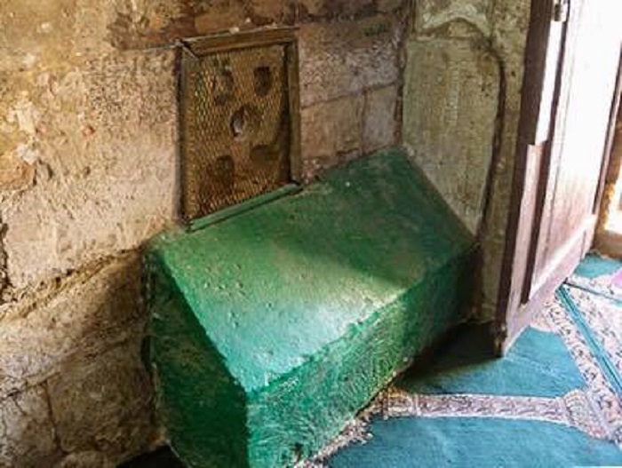 هنا يرقد جثمان فاتح مصر ، الصحابي الجليل #عمرو_بن_العاص ، خلف الباب الخشبي لجامع الصحابي عقبة بن نافع الموجود فوق سفح جبل المقطم بالقاهرة .