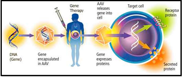 ٢٦. على وجه الخصوص، ظهرت فئة من الناقلات الفيروسية مبنية على الفيروس المصاحب لفيروس الادينو (AAVs) كناقل فيروسي جيد كونها لا تسبب المرض في البشر ويمكن تصميمها وتوجيهها نحو أنواع معينة من الخلايا أو الأنسجة وقدراتها على إفراز البروتينات لمدة تصل إلى ١٠ سنوات. #العلاج_الجيني.