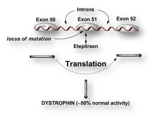 يستخدم هذا الدواء لبعض مرضى ضمور دوشين العضلي بسبب طفرات في المورث DMD التي تمنع انتاج بروتين dystrophin فعال وظيفياً.