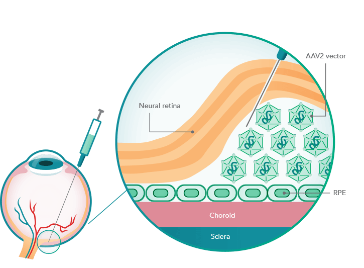 تم اعتماد هذا #العلاج_الجيني في ٢٠٠٤ في امريكا لعلاج الضمور البقعي في العين والمرتبط بالعمر (AMD) وهو احد الاسباب الرئيسية لفقدان البصر عند الأشخاص الذين تتجاوز أعمارهم ٦٠ عاماً بسبب تدهور مركز الشبكية.