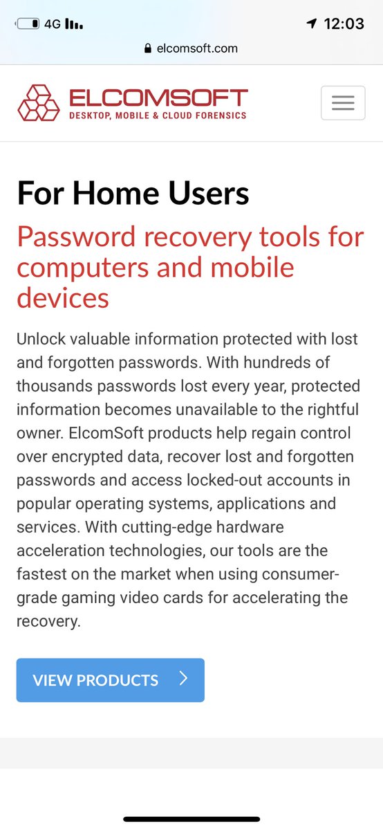 بعض أدوات شركه ElcomSoft للتحقيق الجنائي الرقمي تتوفر فقط للحكومة والسلطات الخاصه .