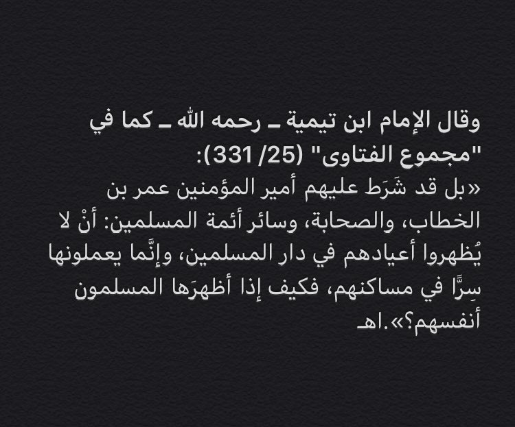 (( لَا تَدْخُلُوا عَلَى الْمُشْرِكِينَ فِي كَنَائِسِهِمْ يَوْمَ عِيدِهِمْ, ...