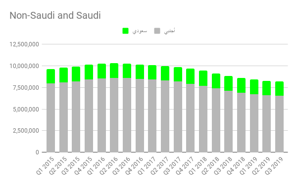 الزيادة في عدد الوظائف للسعوديين في القطاع الخاص كانت بمقدار 410 وظائف فقط خلال الربع الثالث ومعظم الوظائف الجديدة كانت بأجر أقل من 3 آلاف ريال شهري.