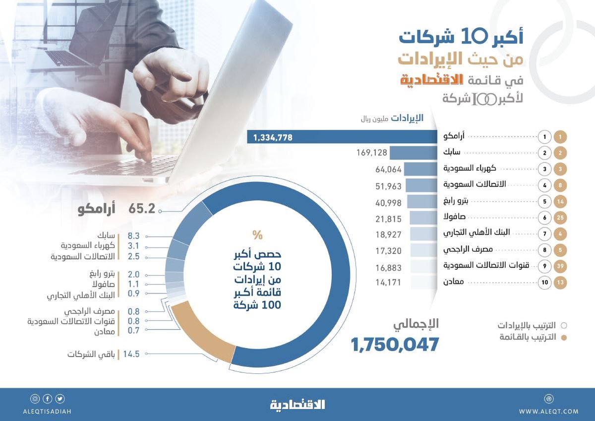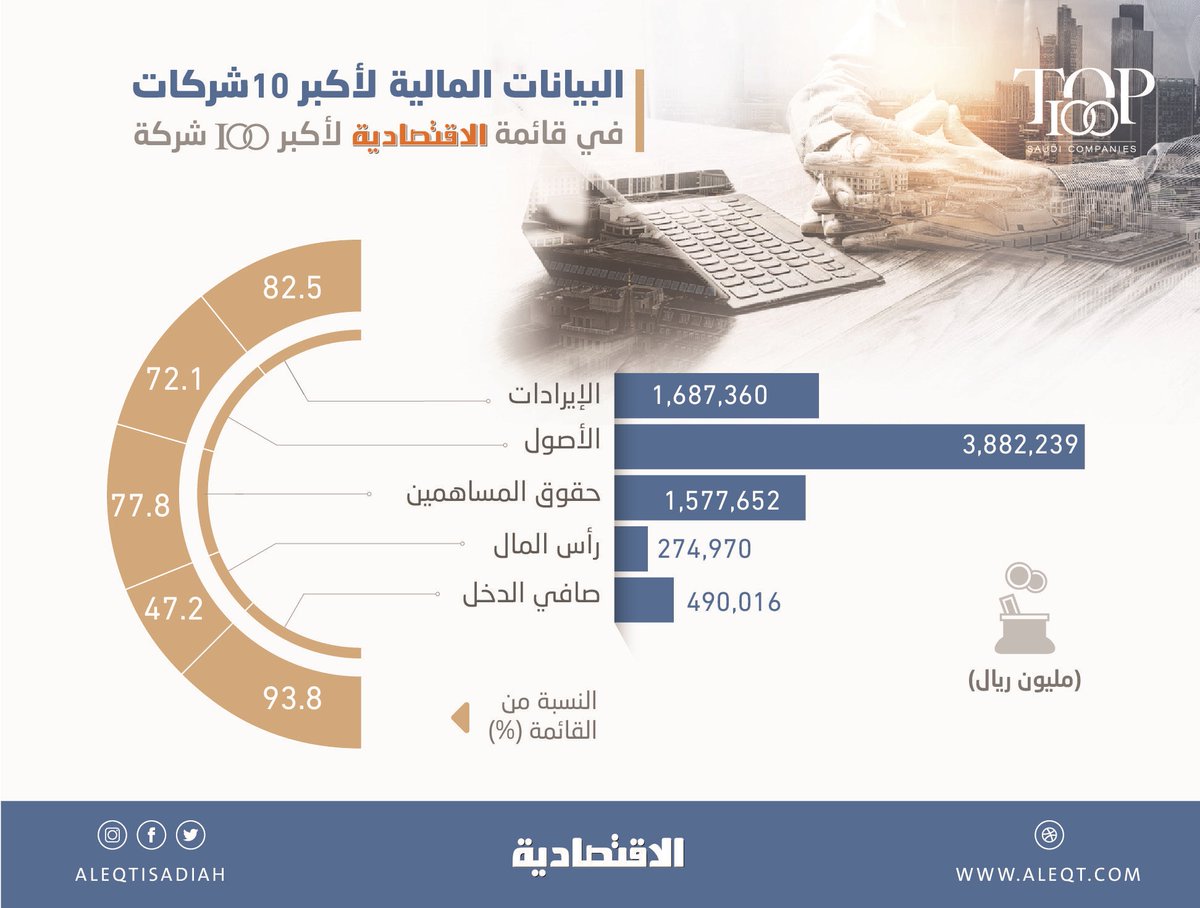 #قائمة_الاقتصادية_لأكبر_100_شركة بالشراكة مع "أرقام" استندت إلى 4 معايير .. إجمالي الإيرادات والأصول وحقوق المساهمين ورؤوس الأموال